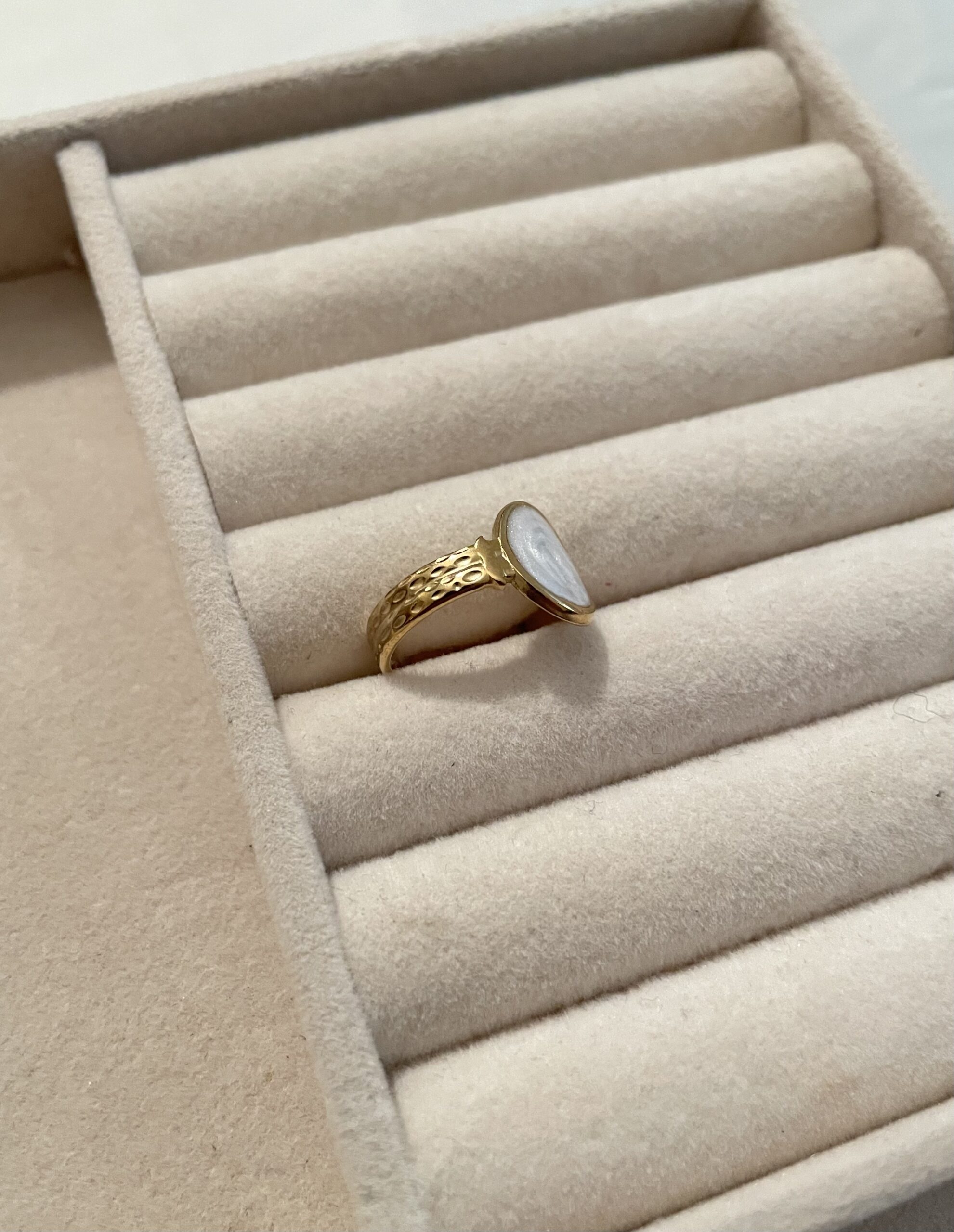 The Myra Starlit ring in radiant white exudes delicate elegance and understated charm. Its luminous design adds a touch of sophistication to any outfit. Adjustable for a perfect, comfortable fit.