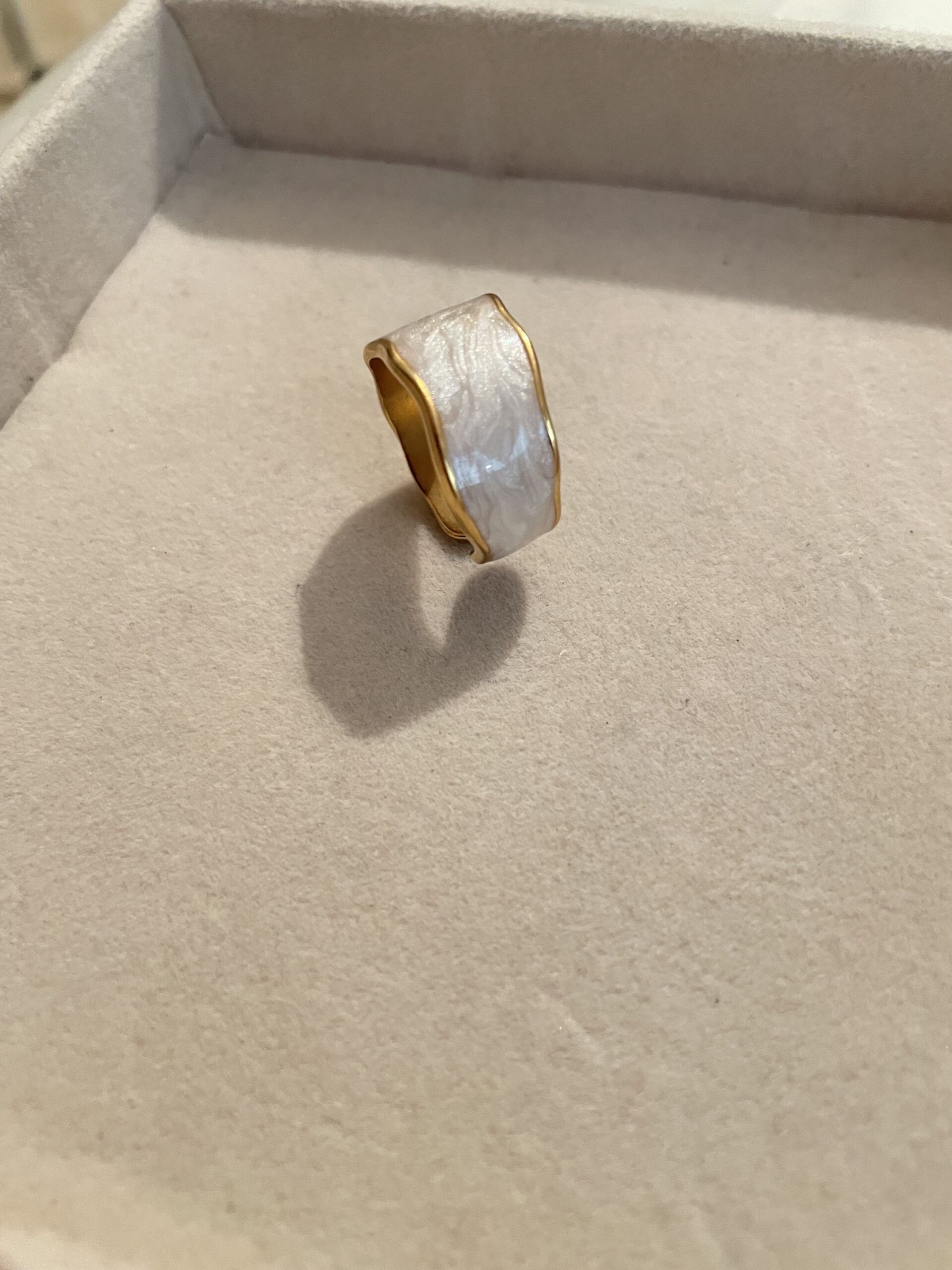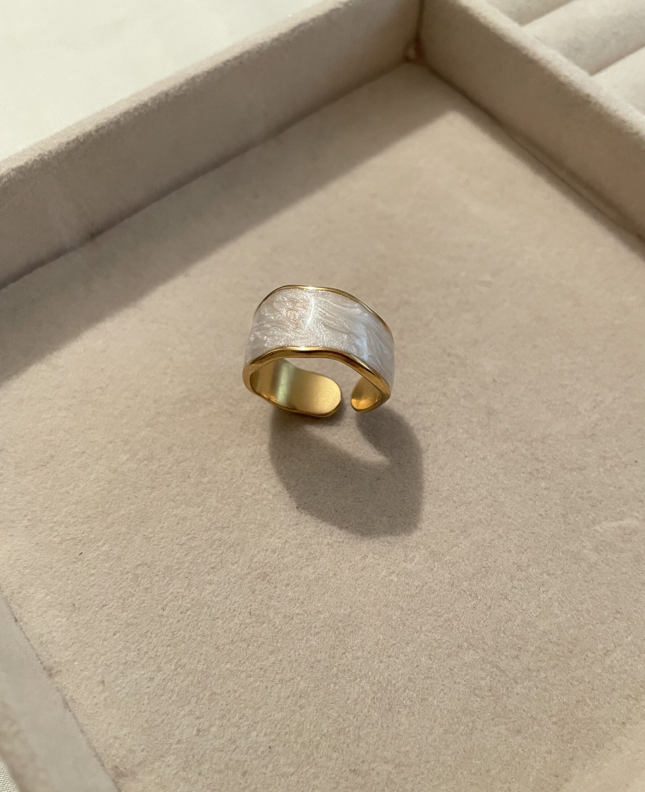 The Milky Glow Ring shines with a luminous white finish and smooth stainless-steel accents. Its adjustable style ensures a comfortable fit while adding subtle charm to any look.