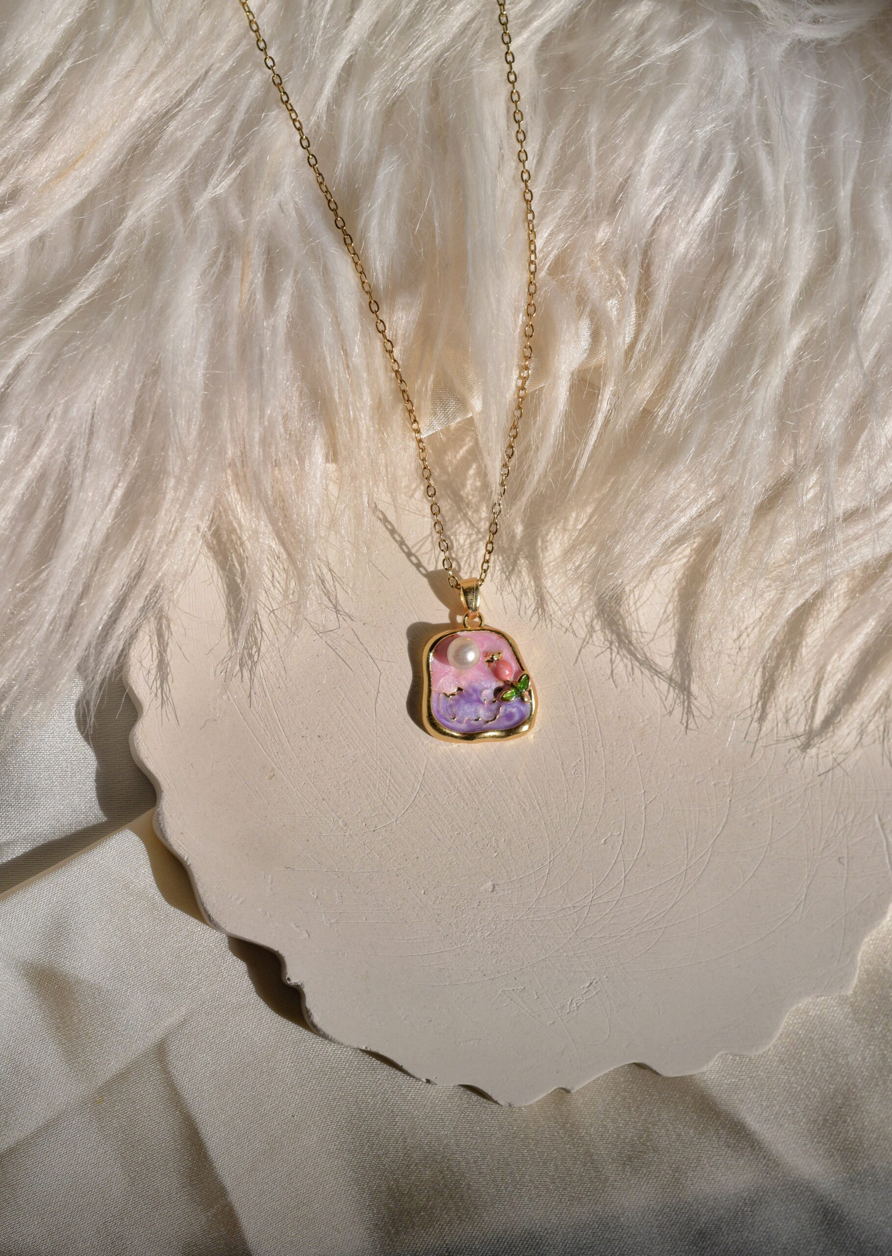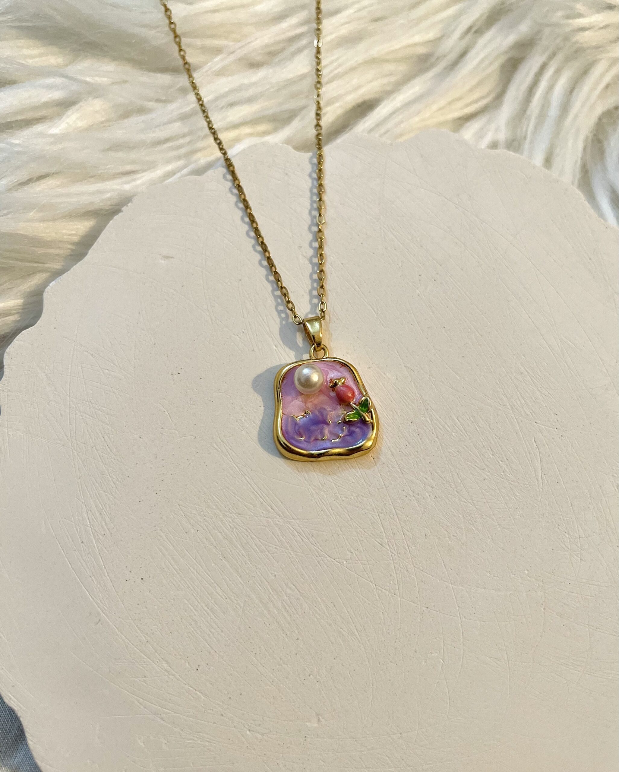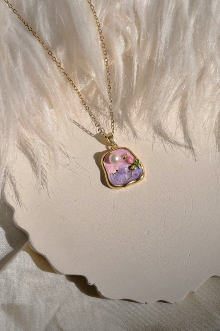 The Rosella Blush pendant radiates soft femininity with its rose-inspired design and delicate blush tones. Accented with a luminous pearl, it embodies romance and elegance, making it a perfect statement of timeless beauty.